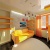 Стилістичне рішення В основі інтер’єру – мінімалізм та збереження простору. А тому чи не найважливішим завданням було правильне зонування. Інтер’єр не перевантажений зайвими деталями. Легкий акцент – геометричні форми на стінах та стелі у всіх кімнатах. Коридор виконано у пастельних тонах. Він плавно переходить у вітальню, яка збільшена завдяки її об’єднанню з лоджією. Саме там, де колись була лоджія, зараз – затишне місце для відпочинку із квітами та краєвидом із вікна. У спальні для зручності розмістились шафа-купе, туалетний столик та велике двоспальне ліжко. Також господарі зможуть тут подивитися і телевізор. Краплю пристрасті в інтер’єр саме цієї кімнати додає поєднання білого та червоного кольорів. Натомість жовтогарячі акценти (диван, штори, полички) у дитячій кімнаті наповнюють її сонцем, роблять теплішою та привітнішою.