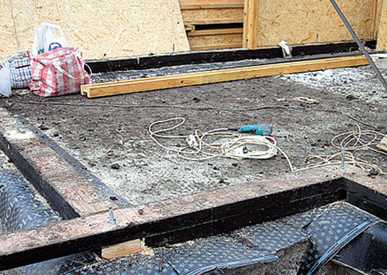нанесением слоя щебня с последующей его утрамбовкой и заливкой бетонной плиты или устроив столбчатый фундамент. - Если плита фундамента бетонная, перед заливкой в ее полость укладываются инженерные коммуникации каркасного дома.
