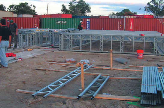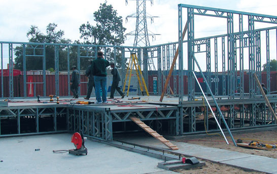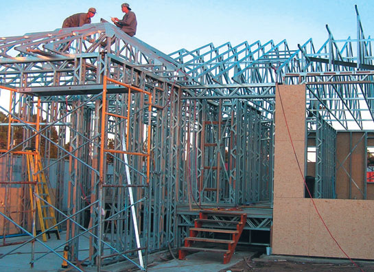 Балки для металлического каркаса производят из оцинкованного или холоднокатанного алюминиевого профиля. Для соединения используют алюминиевые заклепки. Технология основана на применении легких стальных тонкостенных конструкций (далее ЛСТК) термопрофилей и термоструктурных панелей.