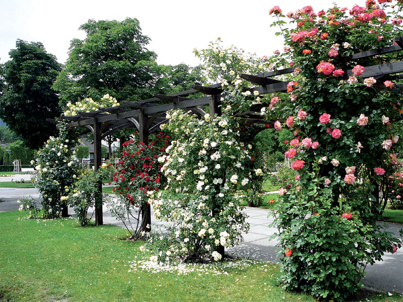 Розы для перголы (Фото: Юта Арбатская)12 июля 1969 года состоялась торжественное открытие розария в Бадене. На церемонию прибыли федеральный министр Шлайнцер, премьер-министр Австрии Маурер и президент Шварцрок. Внезапно начавшийся ливень заставил перенести праздничные мероприятия в парадный зал старого отеля Гутенбрунн. В череде запланированных торжеств было проведено «крещение» новой розы селекции немецкой фирмы Тантау, которую авторы назвали в честь открытия розария «Город Баден» — Kurstadt Baden. Вечером на открытой площадке перед павильоном оранжереи состоялся концерт духового оркестра местной полиции. В первые два дня открытия розария, в котором было высажено 50 000 розовых кустов, сад посетили более 10 000 человек.