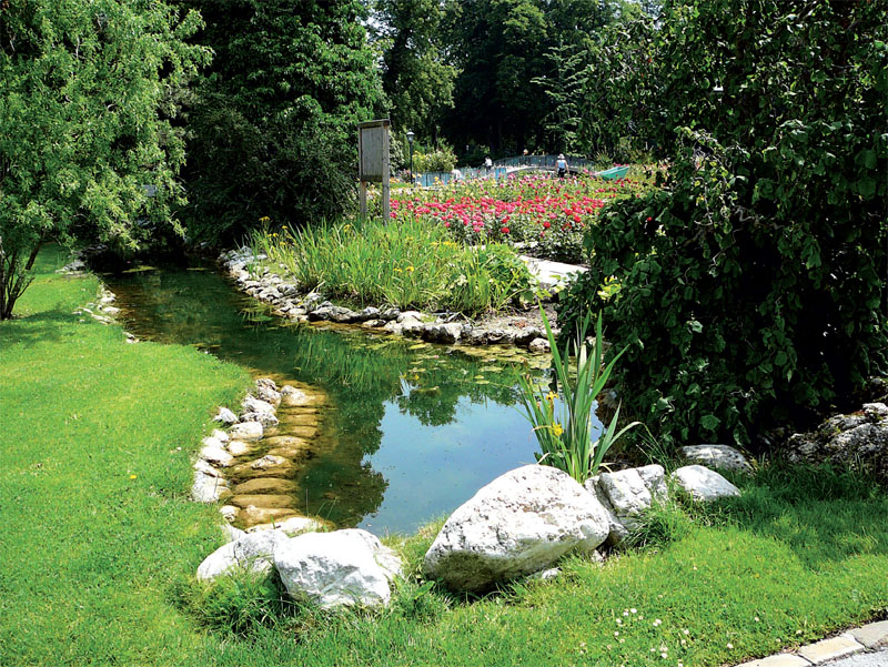 В розарии имеется водоем (Фото: Юта Арбатская)Сколько вывел Гешвинд новых сортов роз, точно неизвестно. Предполагают, что их численность колебалась между 130 и 140. После его смерти большинство роз были утеряны, питомник продан, а книги забыты. Будучи человеком бедным и постоянно нуждаясь в деньгах, Гешвинд часто продавал свои новинки другим селекционерам, в частности немецким розоводам Петеру Ламберту из Трира и Шмидту из Эрфурта. Таким образом, некоторые сорта Гешвинда попадали в торговлю под именами других селекционеров. Сегодня в баденском розарии собрано 45 сортов селекции Рудольфа Гешвинда. В парке в 1983 году установлен памятник этому замечательному человеку.